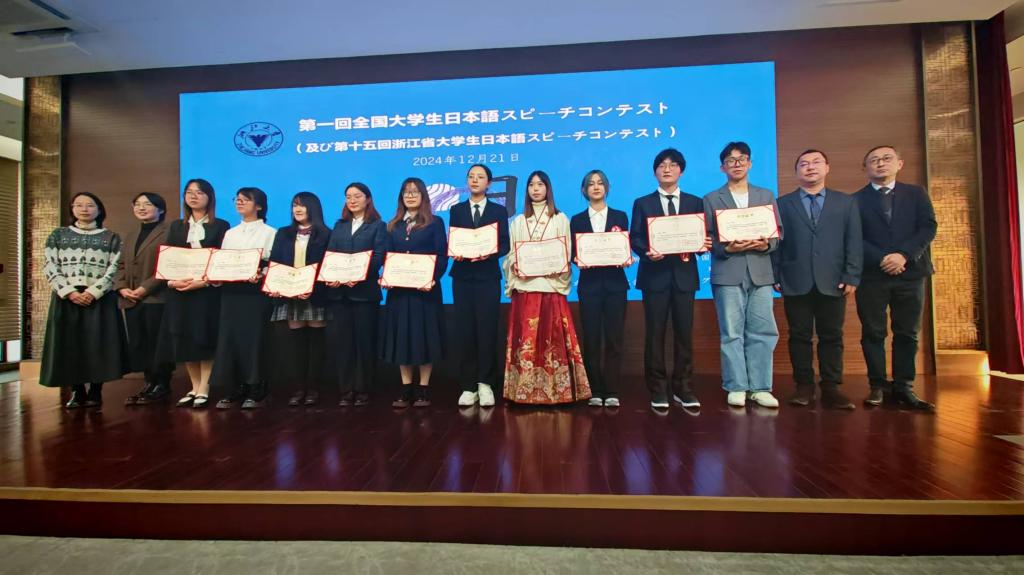 12月21日,第一届全国大学生日语演讲比赛暨第十五届浙江省大学生日语演讲比赛在浙江大学紫金港校区落下帷幕。在吴蓉斌老师的指导下,学院22日语1班的钱金跃同学表现出色,荣获全国决赛三等奖。