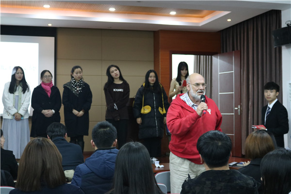 英语外教David也热情地提出了两点建议:在配音时选手应尽量面向观众;选择更多类型的影片,不要只局限于动画影片。