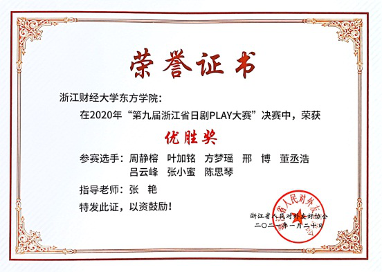 伟德国际victor1946学子在“第九届浙江省日剧play大赛”中获奖