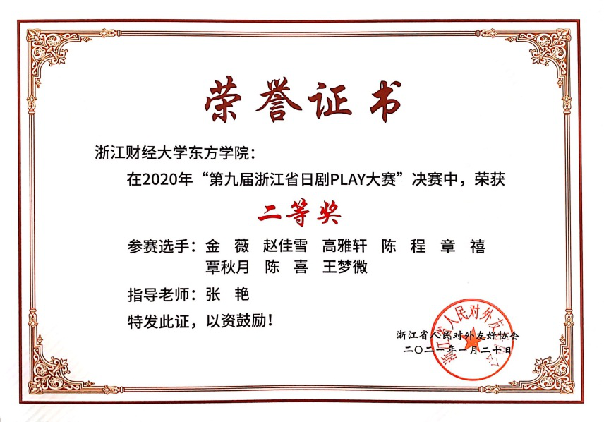 近日,由浙江省人民对外友好协会主办,浙江工商大学东方语言与哲学学院团委承办,中国日语教学研究会浙皖赣分会、浙江工商大学和风日语协会协办的“第九届浙江省日剧play大赛”顺利落幕。伟德国际victor1946派出的3支团队分别获二等奖1项,三等奖1项,优秀奖1项。