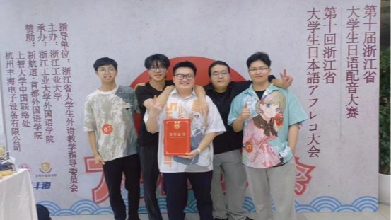 2024年5月18日下午1点半,由浙江省大学外语教学指导委员会与浙江工业大学联合主办的第十届浙江省大学生日语配音大赛在浙江工业大学屏峰校区隆重举行。来自浙江工商大学、浙江理工大学、浙江师范大学及东方学院在内的全省15所高校的15支队伍参加了此次比赛。经过激烈角逐,我院日语专业21日语2班庄徐宏、22日语1班蔡鹤翔、夏远骁、徐治焌、以及22产品2班林利浩组成的团队荣获大赛二等奖的好成绩。日语专业教师冯芳老师、竹内尉晴老师担任本次比赛的指导老师。