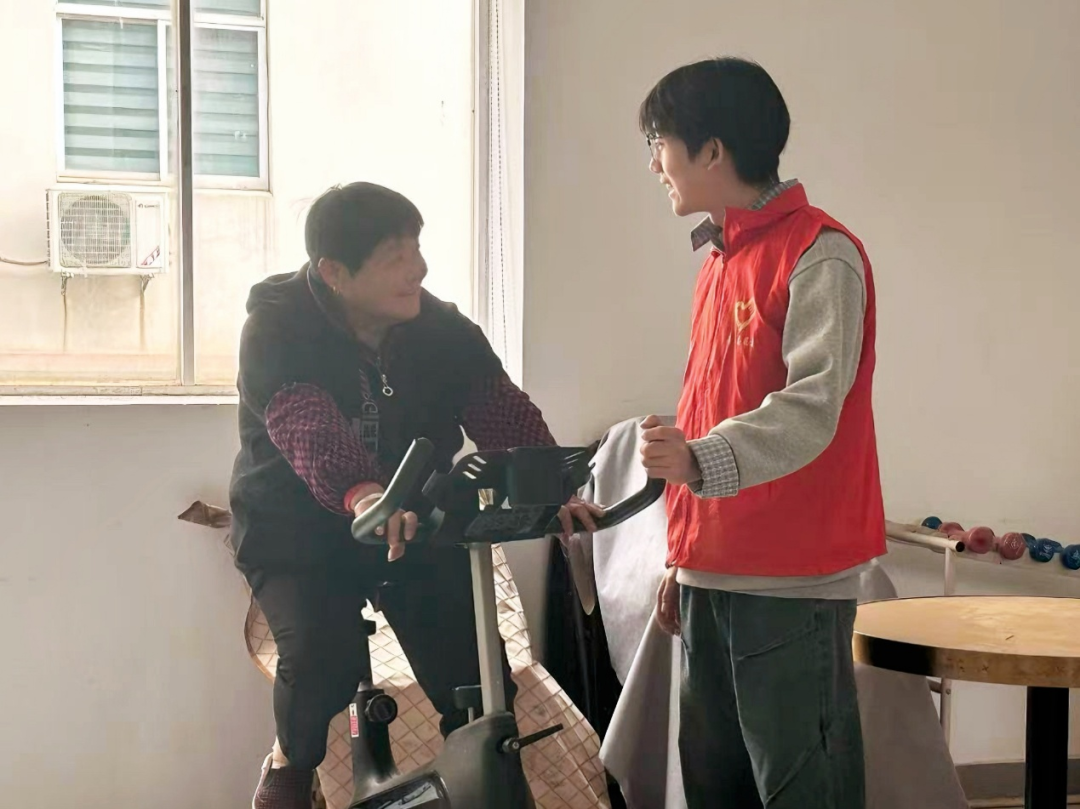 签约结束后,“党建暖夕阳”为老服务活动随即启幕,成为“扶芳巢家”项目为老服务的“首场实践”。在褚石村老年人活动室,教师党员俞甜、徐雯婷带领学生党员与志愿者,手把手教老人练习太极基础招式,不时俯身调整姿势;器材区域内,志愿者守在健身单车旁,帮老人调整座椅、检查安全,同时陪老人唠家常;之后,师生们还走进老人的拆迁临时过渡房,查看居住环境、整理屋内物品,倾听老人讲述褚石村变迁,让临时住所暖意融融。
