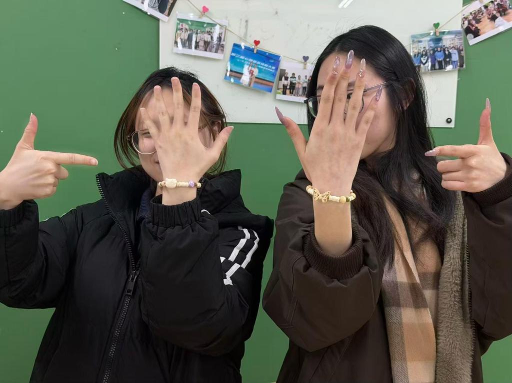 一颗颗晶莹的珠子,在指尖串联成独属于自己的精美手串。每一件成品都独一无二,既承载着同学们的创意与心意,也藏着这个三月最温柔的仪式感。大家佩戴上亲手制作的手串,脸上洋溢着满足与喜悦,用这份特别的手作,致敬每一个闪闪发光的自己。
