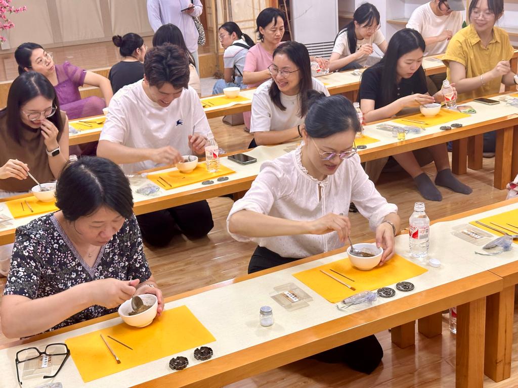 活动现场,专业导师为教师们详细讲解了古法制香的历史渊源、技艺特点及制作流程,涵盖了配香、合香、制香和脱模等多个环节。在导师的悉心指导下,参与教师们纷纷动手实践,沉浸于古法制香的独特体验中。
