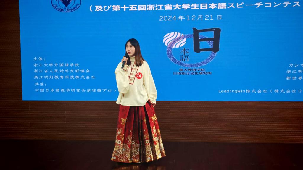 决赛吸引了来自浙江大学、上海交通大学、上海外国语大学、同济大学等多所知名高校的优秀选手参与,竞争激烈。钱金跃作为省内独立院校的唯一代表参赛,展现出扎实的日语功底和独特的风采。