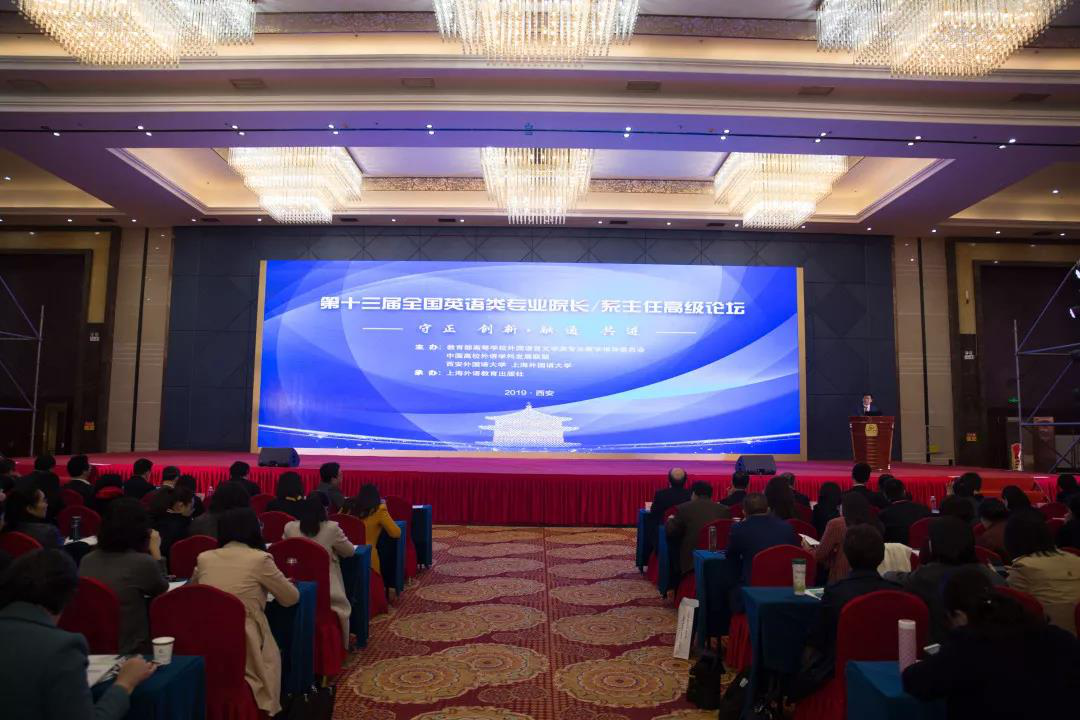 第十三届全国英语类专业院长/系主任高级论坛于4月12日在古都西安召开。本届论坛由教育部高等学校外国语言文学类专业教学指导委员会、西安外国语大学和上海外国语大学联合主办,上海外语教育出版社承办,以“守正创新 · 融通共进”为主题,在建设新文科背景下,向内求索、向外延展,在英语类专业与相关专业之间、在英语类各专业之间搭建高端交流平台,以推动学科专业的内涵建设和专业人才培养。我院教师商伟霞应邀参加本次论坛。