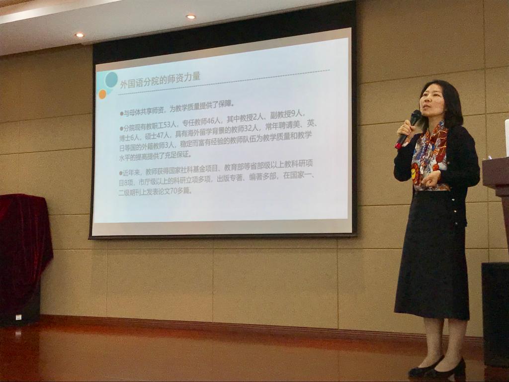 本次参观交流活动由外国语分院与信息分院联合承办,来访师生在学生志愿者的带领下,先来到J7-409多功能厅,由周院长、姚院长为来访师生详细地介绍了外国语分院和信息分院的专业建设成果、专业特色和优势、师资力量、主修课程设置、学生就业领域等方面。随后,由优秀学生代表们向学弟学妹们介绍了在东方学院的学习生活及感受,并分享了自己的学习经验,使来访师生深刻地感受到了东方学子活泼昂扬的精神面貌,受到了大家的一致好评。