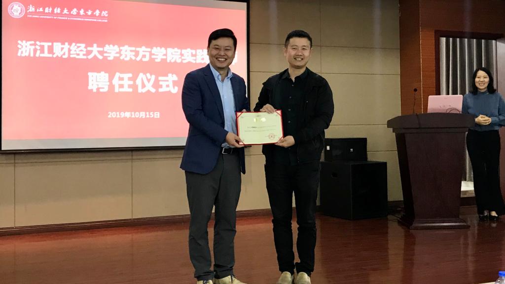讲座接近尾声,吴老师和同学们热情互动,提问声此起彼伏,吴老师耐心地就同学们的疑问做了详细解答,同时,也给予了同学们最真切的祝愿。希望同学们能将自己的专业技能价值最大化,并与技能有机结合,成为复合型人才。讲座最后举行的是实践导师聘任仪式,由陈松老师为吴老师颁发了实践导师聘书,吴老师表示会定期来东方学院为大家分享更多的经验。
