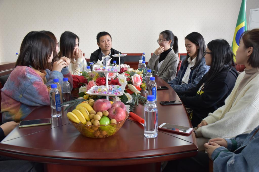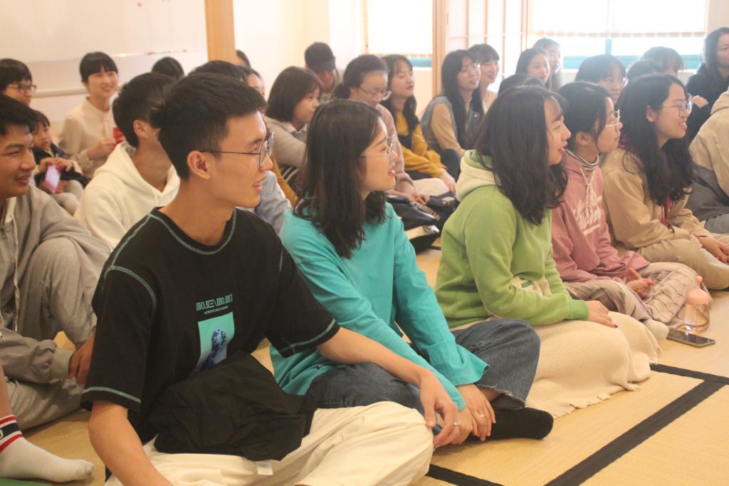 日语专业前外教竹内玄洞老师莅临茶道馆,偕同优秀校友方凌飞、陈壁铖和到场的在校学生和校友可爱互动。