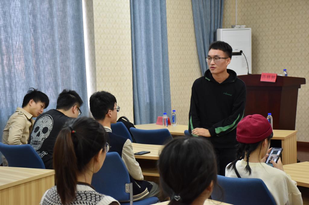 美国馆里,陈晓、陈林林、汤成龙、裘舒杰向到场的大一、大二学生热情分享学习经验和待人接物之道,并将他们与东方的故事娓娓道来。