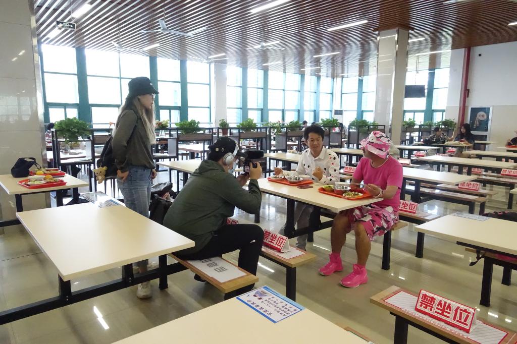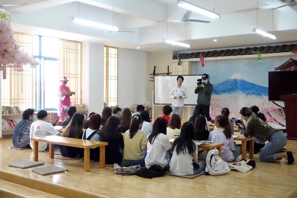 本次节目的主人公是我院日语外教竹内蔚晴,录制主要分课堂教学与课余生活两个场景。“课堂教学”部分的拍摄在我院的外语自主学习与文化体验中心完成。课堂中,竹内老师讲课生动有趣,富有激情,吸引同学们认真聆听,听得津津有味。课余时间,摄制组跟随拍摄了疫情期间校园内就餐的场景,对我院“隔位就餐”等一系列疫情防控措施表示认可。随后,伟德国际victor1946李艳萍老师在茶道教室展示了点茶技艺,并讲述了中日点茶法的历史渊源。其后,摄制组到校外选取了具有海宁当地特色的美食与场景进行拍摄,并将其与校园活动与场景相融合,凸显了校园文化与当地文化的有效结合。拍摄结束后,竹内亮导演表示:在为期两天的拍摄中,他走进竹内老师的生活中,体验到了东方学院的校园生活,接触到了海宁当地的风土人情,感受到了竹内老师选择住在这里的理由。整体拍摄制作完成后,将在优酷、爱奇艺、腾讯、哔哩哔哩等各大视频网站上择期播出。