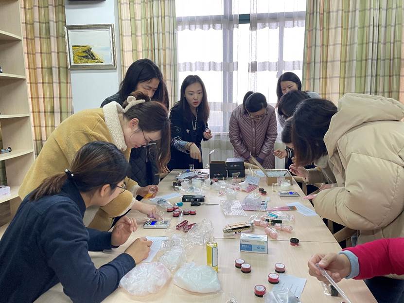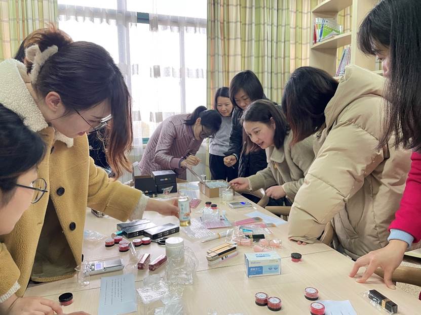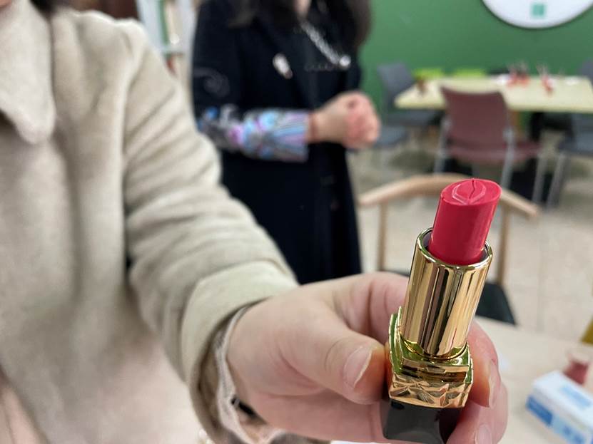 半小时后,当自己亲手做的口红从模具中完美地脱出,大家不由得发出惊叹声。口红形形色色,每一只都是“私人订制款”,有些色号不同,有些形状不同,远比从商店购买的口红更有意义。虽然部分老师因特殊原因缺席了此次口红的制作,但也收到了来自同事们的心意,弥补了缺憾。相信大家在收获口红的同时,也收获了满满的成就感。不仅体验到了DIY口红的乐趣,也感受到了温馨与关怀,同时也加深了同事间的情谊。