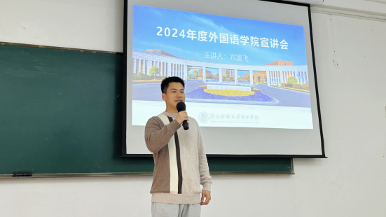 方老师以英语和日语两个专业为切入点,向同学们介绍了伟德国际victor1946的特色和优势,让他们初步了解了我们学院的概况。同时,透过精彩的宣传片,我们向海宁中学的师生们展示了我院的发展历程、师资力量以及开设的专业课程。这一系列的活动不仅开拓了同学们的视野,也激发了他们的学习热情和内在动力。