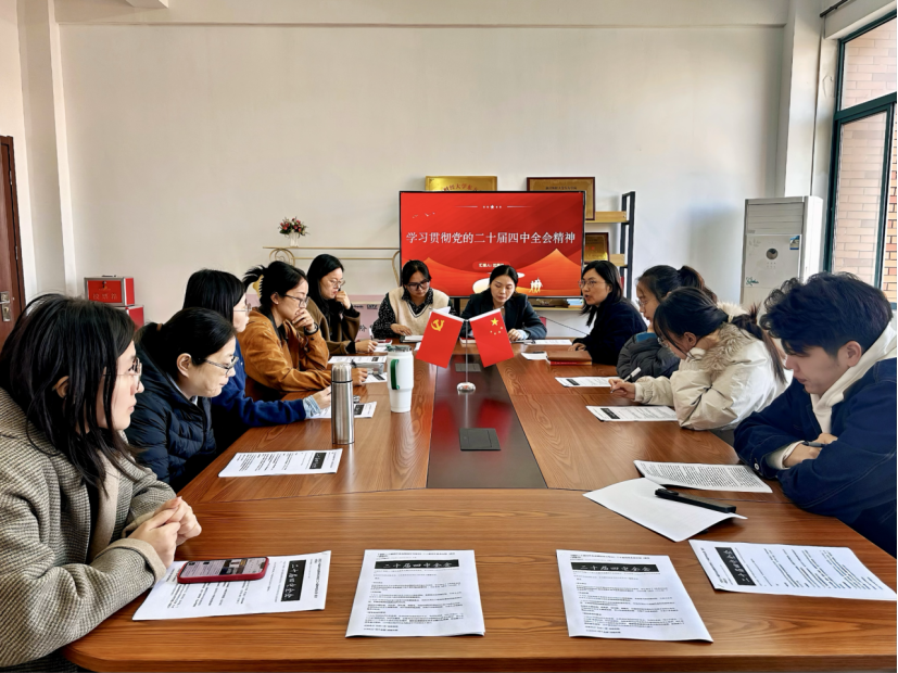 为深入学习领会党的二十届四中全会精神,切实把思想和行动统一到党中央决策部署上来,11月26日,学院教工党支部在7号教学楼512党员之家召开专题学习会。党支部书记沈惠佳主持并领学全会核心精神,全体教工党员参会。