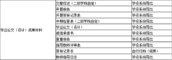 学生在完成毕业论文整套资料后,将导师认可的经过修改后的毕业论文全套材料(开题报告+论文终稿)上传到论文系统,保证系统里的是均是最终稿。论文答辩结束后,学生将亲笔签名的诚信承诺书拍照上传到系统。答辩记录本由答辩组组长交至学院教学办公室存档。