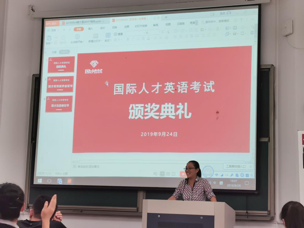 9月24日晚,分院4教101教室举办了“新青年,新视野”国才(国际人才英语考试)系列专题讲座,300名学生报名参加,现场座无虚席。教务管理部副部长刚、外国语分院副院长周春霞、大学英语教学部主任赵倩等教师出席本次活动
