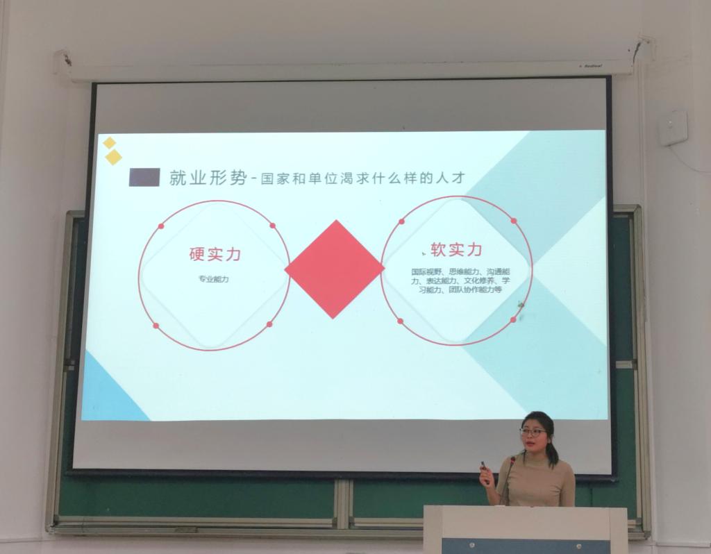 讲座开始,杨菲从国家当下大背景出发指出国家对当代青年的要求以及国际人才的核心素养是英语沟通能力的观点,切入国才考试的主题。紧接着,杨菲老师从就业形势着手分析根据职场对招聘人才的要求,指出“沟通、服务、应用”国际人才优势国才考试正在被更多的企业单位所认可,逐渐成为一张通往中外企业的绿色通行证。在阐述完国才考试的重要性后,杨菲对国才考试的内容进行了透彻的剖析由浅入深,从国才考试初级、中、高级再到高端、高翻等不同级别,让同学们对国才考试了更的了解。最后,杨菲为同学介绍了报考国才的注意事项及鼓励政策。我鼓励东方学子积极报考,同学们可以通过微信公众号“东方之英”、备考QQ群等多渠道了解英语,了解国才。
