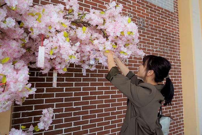 午饭过后,校友们纷纷前往伟德国际victor1946,在签到处诚挚地写下了他们对母校的祝福与祈愿。重逢的喜悦在大厅里弥漫洋溢着,见到过去的老友,他们互相拥抱握手,热切交谈,回忆当年的趣味往事,述说如今的工作家庭,久违亦如初见,亲切而又新鲜。同时,学弟学妹们带领校友们参观了一楼的校友印记与四楼的外语自主学习与文化体验中心。