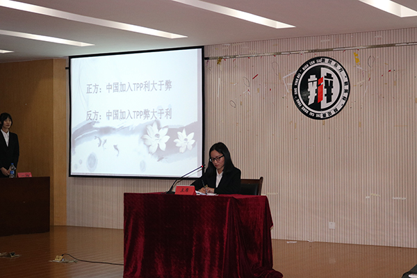 正方认为:中国加入TPP的好处不胜枚举,而最主要的三点就是利于深化企业改革、利于带动周边地区经济发展以及利于改善中国国际形象及国际影响力。尔后,反方针对正方的立论提出质疑:中国现阶段的国情适合加入TPP吗?作为一个市场大国,中国的商品质量难道已经可以与欧美等强国匹敌了吗?他国的片面针对中国难道不会给中国带来经济负担吗?中国能经受的住加入TPP后的那些恶意条款吗?外国语代表队的连连发问,可谓信心满满,势在必得。